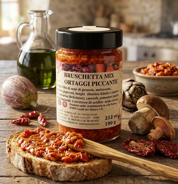 Condimento spalmabile a base di olio di semi di girasole, melanzane, funghi, carciofi, pomodori secchi e peperoni. Si tratta di un prodotto molto versatile, i quanto può essere usato spalmato su crostini, in abbinamento a formaggi stagionati, per farcire panini e per insaporire piatti di pasta.